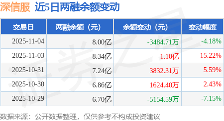 证券之星消息,11月4日,深信服(300454)融资买入1.49亿元,融资偿还1.86亿元,融资净卖出3712.1万元,融资余额7.84亿元,近20个交易日中有14个交易日出现融资净买入。