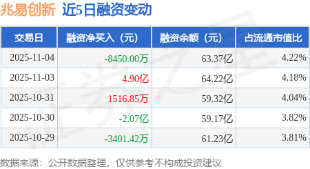 证券之星消息,11月4日,兆易创新(603986)融资买入8.75亿元,融资偿还9.6亿元,融资净卖出8450.0万元,融资余额63.37亿元,近20个交易日中有13个交易日出现融资净买入。