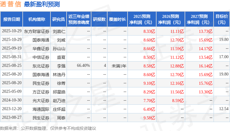 证券之星数据中心根据近三年发布的研报数据计算,东北证券李强研究员团队对该股研究较为深入,近三年预测准确度均值为66.4%,其预测2025年度归属净利润为盈利8.58亿,根据现价换算的预测PE为15.06。