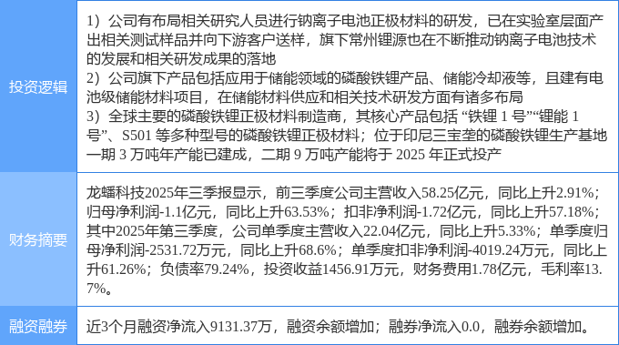 该股为磷酸铁锂,储能,钠电池概念热股,当日磷酸铁锂概念上涨3.89%,储能概念上涨2.95%,钠电池概念上涨2.43%。