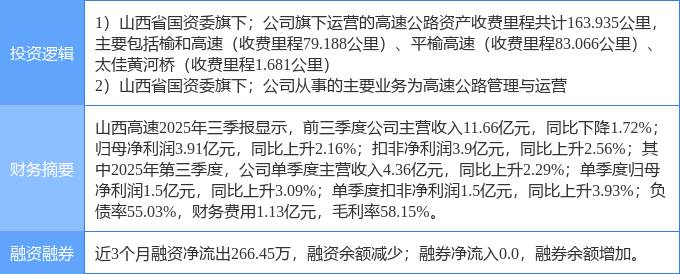 该股为山西国企改革,国企改革,高速公路概念热股,当日山西国企改革概念上涨1.56%,国企改革概念上涨0.78%,高速公路概念上涨0.73%。