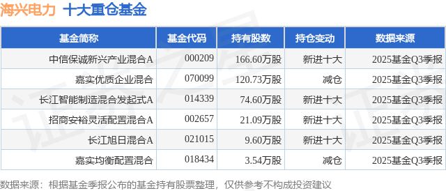 根据2025基金Q3季报公募基金重仓股数据,重仓该股的公募基金共6家,其中持有数量最多的公募基金为中信保诚基金的中信保诚新兴产业混合A。中信保诚新兴产业混合A目前规模为18.39亿元,最新净值2.7065(11月4日),较上一交易日下跌1.8%,近一年上涨24.03%。该公募基金现任基金经理为孙浩中。孙浩中在任的基金产品包括:中信保诚至兴混合A,管理时间为2020年11月19日至今,期间收益率为36.15%;中信保诚中小盘混合A,管理时间为2021年8月30日至今,期间收益率为-8.52%;中信保诚周期轮动混合(LOF)A,管理时间为2023年9月8日至今,期间收益率为39.94%。