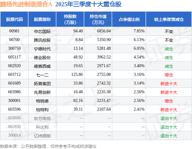 根据2025基金Q3季报公募基金重仓股数据,重仓该股的公募基金共19家,其中持有数量最多的公募基金为鹏扬基金的鹏扬先进制造混合A。鹏扬先进制造混合A目前规模为5.15亿元,最新净值0.7813(11月4日),较上一交易日下跌1.98%,近一年上涨22.96%。该公募基金现任基金经理为张勋。张勋在任的基金产品包括:鹏扬泓利债券A,管理时间为2024年7月29日至今,期间收益率为10.15%;鹏扬数字经济先锋混合A,管理时间为2024年8月27日至今,期间收益率为131.02%;鹏扬产业智选一年持有混合A,管理时间为2024年12月20日至今,期间收益率为21.56%。