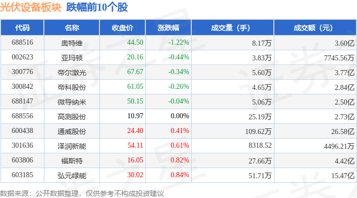 从资金流向上来看,当日光伏设备板块主力资金净流入40.2亿元,游资资金净流出16.74亿元,散户资金净流出23.45亿元。光伏设备板块个股资金流向见下表: