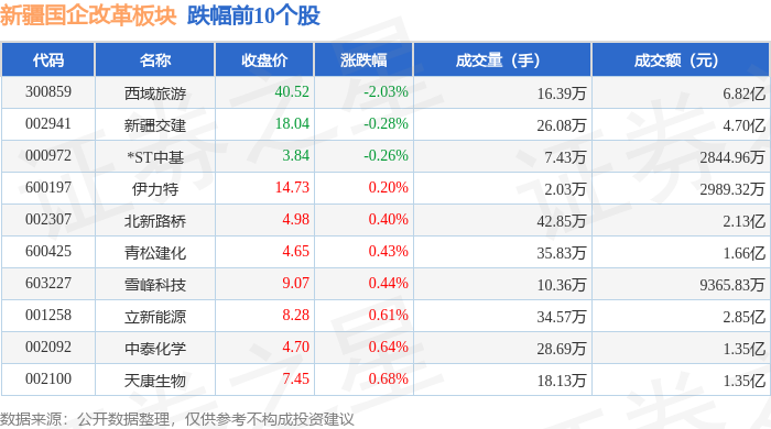 从资金流向上来看,当日新疆国企改革板块主力资金净流出86.33万元,游资资金净流入4281.83万元,散户资金净流出4195.5万元。新疆国企改革板块个股资金流向见下表: