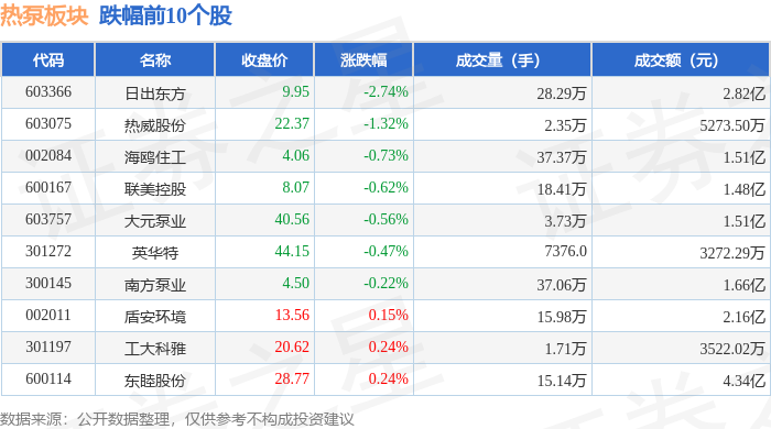 从资金流向上来看,当日热泵板块主力资金净流入9097.93万元,游资资金净流出2.16亿元,散户资金净流入1.25亿元。热泵板块个股资金流向见下表: