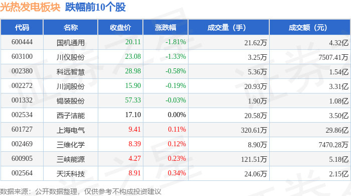 证券之星消息,11月5日光热发电板块较上一交易日上涨0.39%,联诚精密领涨。当日上证指数报收于3969.25,上涨0.23%。深证成指报收于13223.56,上涨0.37%。光热发电板块个股涨跌见下表: