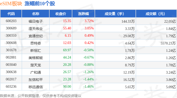 从资金流向上来看,当日eSIM板块主力资金净流出3.44亿元,游资资金净流出4635.29万元,散户资金净流入3.9亿元。eSIM板块个股资金流向见下表:
