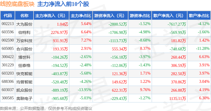 从资金流向上来看,当日线控底盘板块主力资金净流出240.19万元,游资资金净流出1178.02万元,散户资金净流入1418.21万元。线控底盘板块个股资金流向见下表: