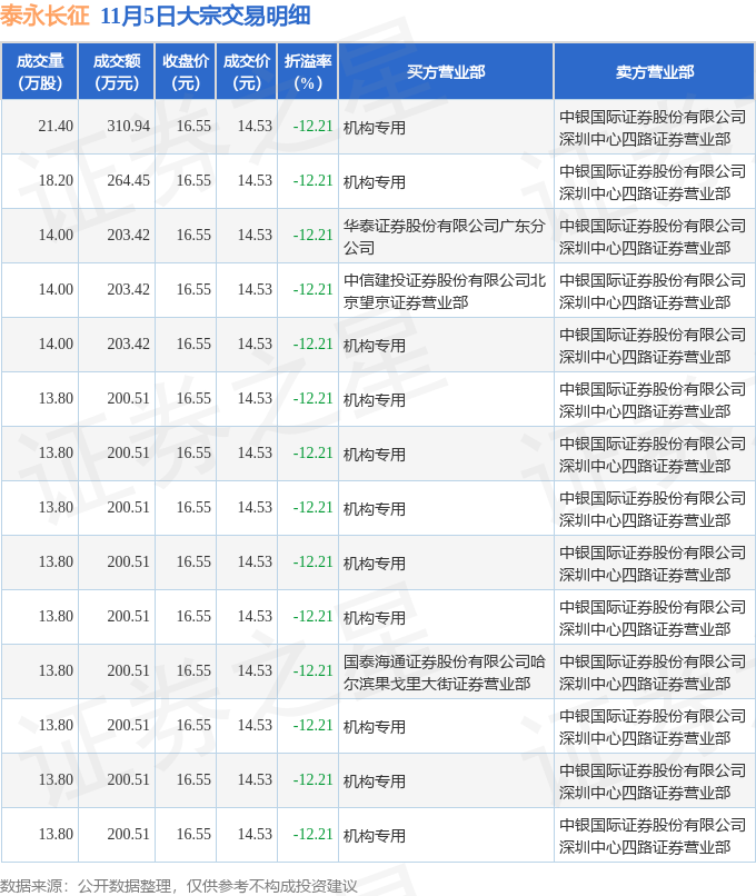 证券之星消息,11月5日泰永长征发生大宗交易,交易数据如下: