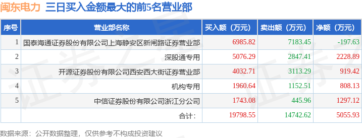 证券之星消息,沪深交易所2025年11月5日公布的交易公开信息显示,闽东电力(000993)因连续三个交易日内,涨幅偏离值累计达到20%的证券登上龙虎榜。此次是近5个交易日内第1次上榜。