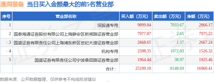 从龙虎榜公布的当日买卖数据来看,机构合计净卖出2458.44万元,北向资金合计净买入2866.17万元。上海超短帮、宁波桑田路等知名游资榜上有名。(知名游资上海超短帮一般指国泰海通证券股份有限公司上海静安区新闸路证券营业部席位、知名游资宁波桑田路一般指国盛证券有限责任公司宁波桑田路证券营业部席位,根据市场资料整理,仅供参考)