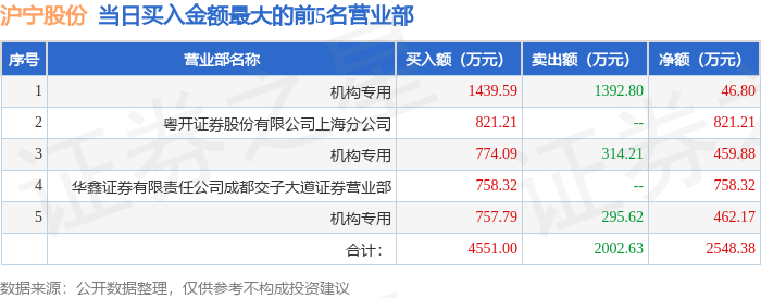 证券之星消息,沪深交易所2025年11月5日公布的交易公开信息显示,沪宁股份(300669)因日涨幅达到15%的前5只证券登上龙虎榜。此次是近5个交易日内第1次上榜。