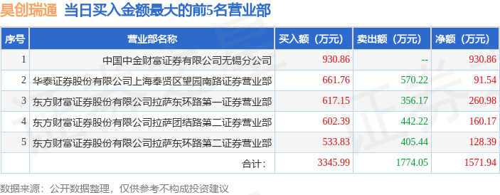 证券之星消息,沪深交易所2025年11月5日公布的交易公开信息显示,昊创瑞通(301668)因日换手率达到30%的前5只证券登上龙虎榜。此次是近5个交易日内第1次上榜。