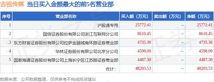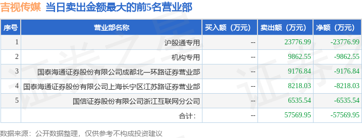 证券之星消息,沪深交易所2025年11月5日公布的交易公开信息显示,吉视传媒(601929)因有价格涨跌幅限制的日收盘价格涨幅偏离值达到7%的前五只证券登上龙虎榜。此次是近5个交易日内第2次上榜。