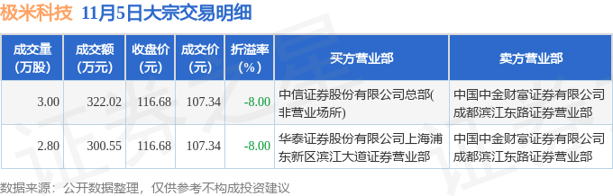 证券之星消息,11月5日极米科技发生大宗交易,交易数据如下: