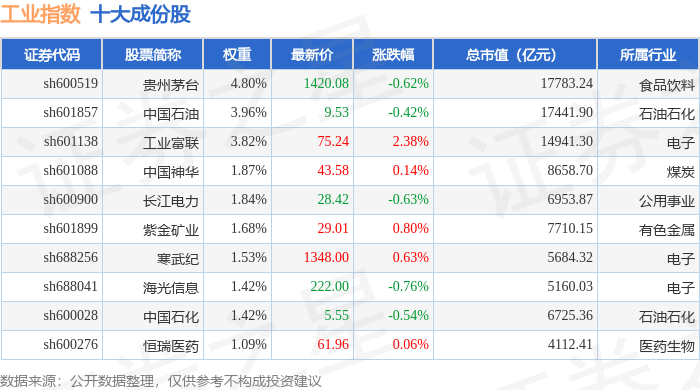 证券之星消息,11月5日,工业指数(000004)报收于3582.8点,涨0.36%,成交6296.23亿元,换手率1.91%。当日该指数成份股中,上涨的有1031家,阿特斯以20.02%的涨幅领涨,下跌的有621家,百合花以10.01%的跌幅领跌。