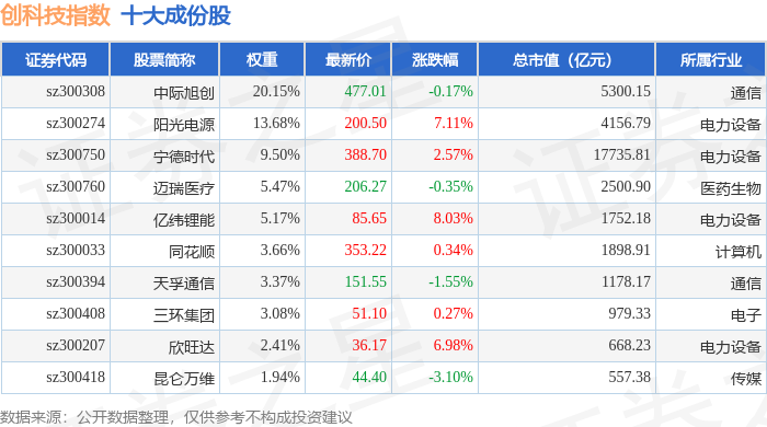 创科技(399276)指数十大成份股详情如下: