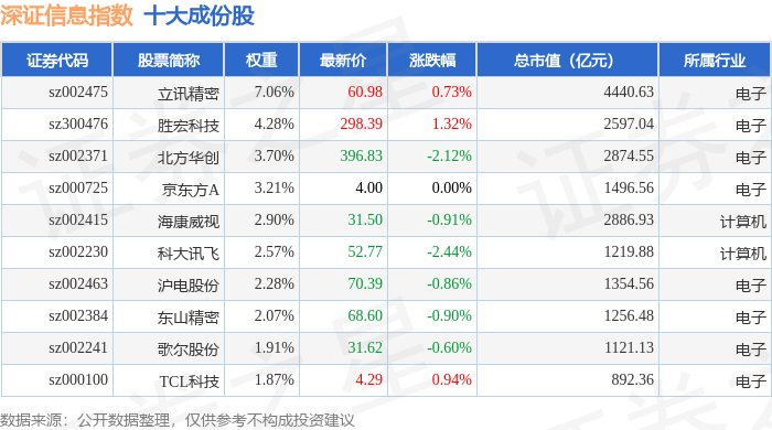 证券之星消息,11月5日,深证信息(399620)指数报收于5561.82点,跌0.5%,成交1540.7亿元,换手率2.31%。当日该指数成份股中,上涨的有36家,欣旺达以6.98%的涨幅领涨,下跌的有103家,光弘科技以7.95%的跌幅领跌。