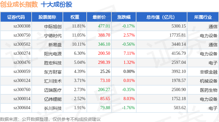 创业成长(399667)指数十大成份股详情如下: