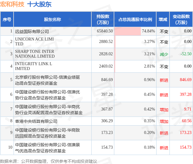 根据宏和科技2025年三季报公布的十大股东详情如下:
