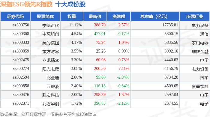 深指ESG领先R(470029)指数十大成份股详情如下: