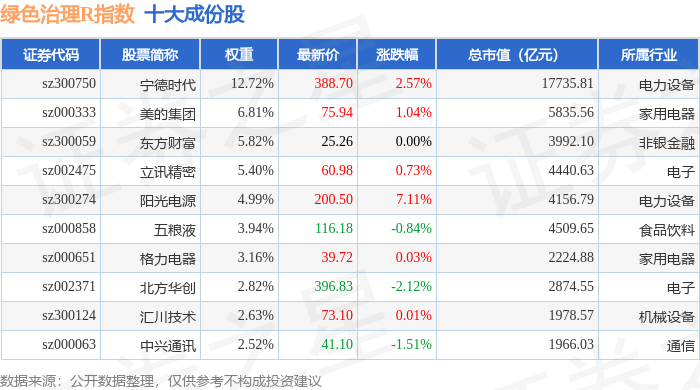绿色治理R(480058)指数十大成份股详情如下: