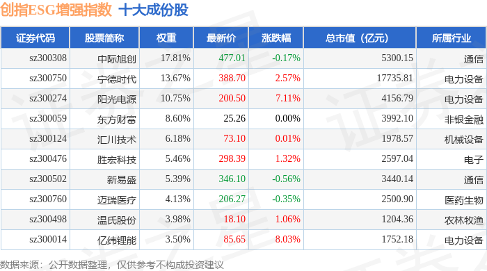 资金流向方面,创指ESG增强(970034)指数成份股当日主力资金净流入合计27.47亿元,游资资金净流出合计10.7亿元,散户资金净流出合计16.78亿元。成份股资金流向详情见下表: