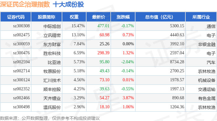 资金流向方面,深证民企治理(970058)指数成份股当日主力资金净流出合计3.59亿元,游资资金净流入合计5.43亿元,散户资金净流出合计1.84亿元。成份股资金流向详情见下表: