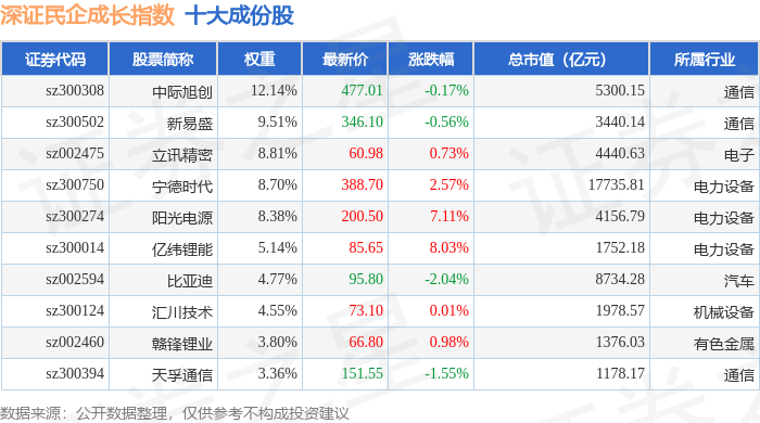 深证民企成长(970071)指数十大成份股详情如下: