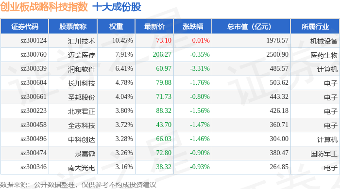 创业板战略科技(971004)指数十大成份股详情如下: