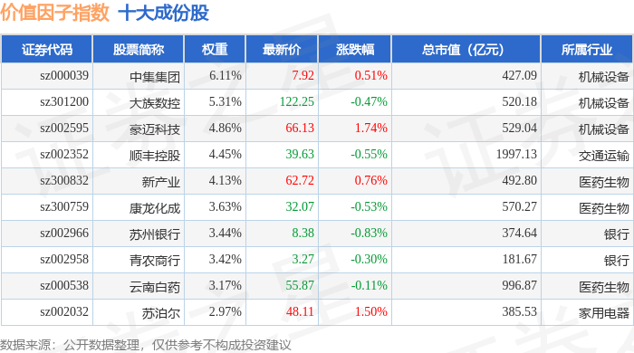 价值因子(980056)指数十大成份股详情如下: