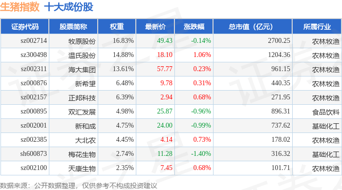 资金流向方面,生猪指数(980073)成份股当日主力资金净流出合计2949.81万元,游资资金净流出合计5538.17万元,散户资金净流入合计8487.98万元。成份股资金流向详情见下表: