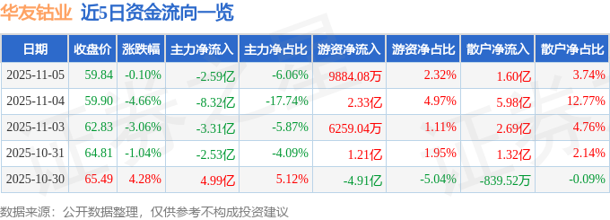 11月5日的资金流向数据方面,主力资金净流出2.59亿元,占总成交额6.06%,游资资金净流入9884.08万元,占总成交额2.32%,散户资金净流入1.6亿元,占总成交额3.74%。