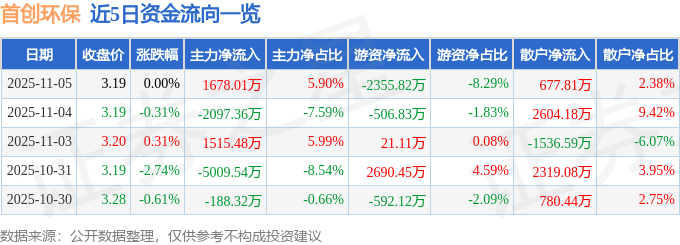 证券之星消息,截至2025年11月5日收盘,首创环保(600008)报收于3.19元,上涨0.0%,换手率1.22%,成交量89.28万手,成交额2.84亿元。