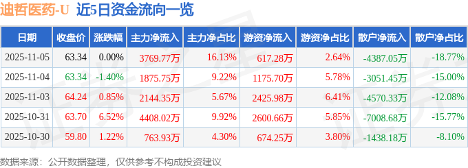 证券之星消息,截至2025年11月5日收盘,迪哲医药(688192)报收于63.34元,上涨0.0%,换手率0.81%,成交量3.66万手,成交额2.34亿元。