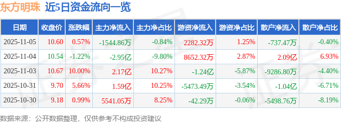 11月5日的资金流向数据方面,主力资金净流出1544.86万元,占总成交额0.84%,游资资金净流入2282.32万元,占总成交额1.25%,散户资金净流出737.47万元,占总成交额0.4%。