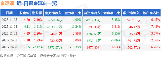 证券之星消息,截至2025年11月5日收盘,京运通(601908)报收于4.2元,上涨2.19%,换手率3.49%,成交量84.36万手,成交额3.52亿元。