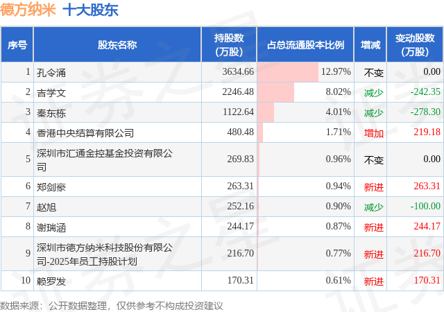 根据德方纳米2025年三季报公布的十大股东详情如下: