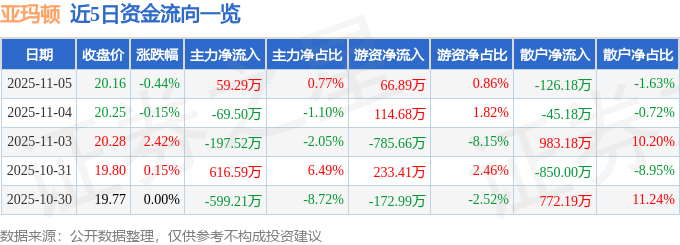 证券之星消息,截至2025年11月5日收盘,亚玛顿(002623)报收于20.16元,下跌0.44%,换手率1.93%,成交量3.83万手,成交额7745.56万元。