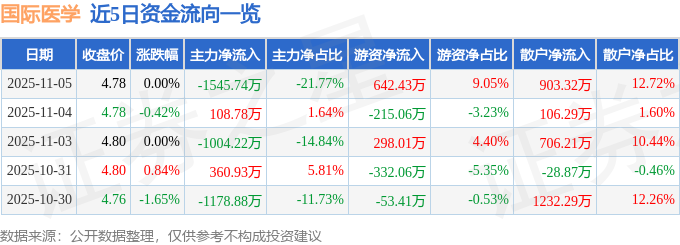 证券之星消息,截至2025年11月5日收盘,国际医学(000516)报收于4.78元,上涨0.0%,换手率0.67%,成交量14.85万手,成交额7099.74万元。