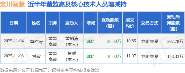 宏川智慧近半年内的董监高及核心技术人员增减持详情如下: