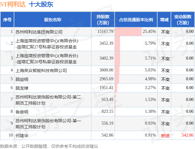 根据ST柯利达2025年三季报公布的十大股东详情如下: