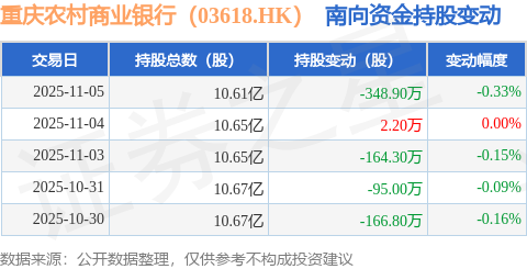 证券之星消息,11月5日南向资金减持348.9万股重庆农村商业银行(03618.HK)。近5个交易日中,获南向资金减持的有4天,累计净减持772.8万股。近20个交易日中,获南向资金增持的有15天,累计净增持5639.7万股。截至目前,南向资金持有重庆农村商业银行(03618.HK)10.61亿股,占公司已发行普通股的42.22%。