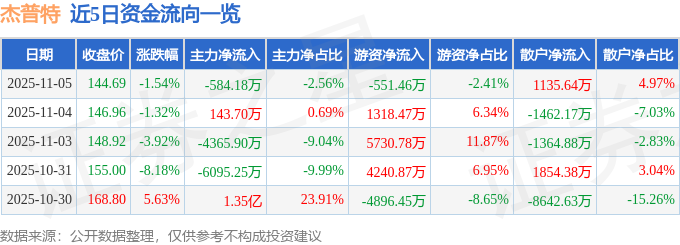 11月5日的资金流向数据方面,主力资金净流出584.18万元,占总成交额2.56%,游资资金净流出551.46万元,占总成交额2.41%,散户资金净流入1135.64万元,占总成交额4.97%。