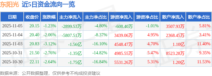 证券之星消息,截至2025年11月5日收盘,东阳光(600673)报收于20.15元,下跌1.23%,换手率1.01%,成交量30.19万手,成交额6.04亿元。