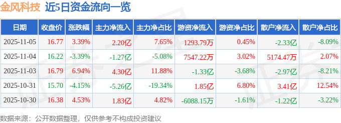 11月5日的资金流向数据方面,主力资金净流入2.2亿元,占总成交额7.65%,游资资金净流入1293.79万元,占总成交额0.45%,散户资金净流出2.33亿元,占总成交额8.09%。