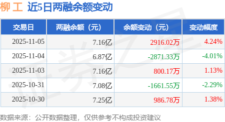证券之星消息,11月5日,柳 工(000528)融资买入5787.3万元,融资偿还2883.46万元,融资净买入2903.84万元,融资余额7.11亿元。