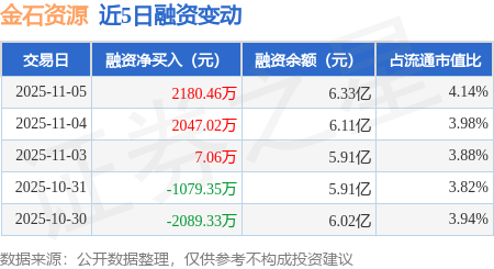 证券之星消息,11月5日,金石资源(603505)融资买入5453.53万元,融资偿还3273.07万元,融资净买入2180.46万元,融资余额6.33亿元,近3个交易日已连续净买入累计4234.54万元,近20个交易日中有13个交易日出现融资净买入。