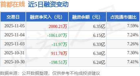 证券之星消息,11月5日,首都在线(300846)融资买入4957.63万元,融资偿还2957.42万元,融资净买入2000.21万元,融资余额6.35亿元。